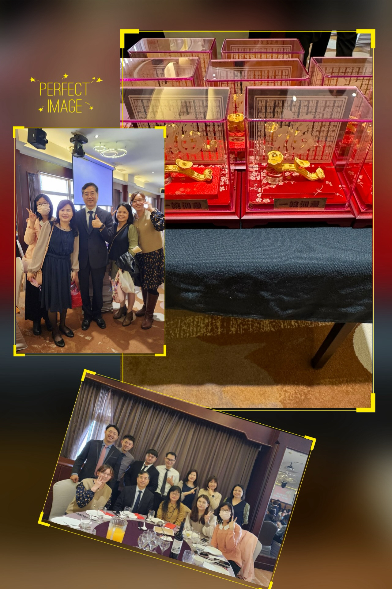 一年一度集團的年終餐會與資深人員表揚於2024年1月20日在集團陳總經理勉勵大家在景氣低迷的經濟大環境下,堅持「建功立事」、「攜手共贏」的信念「2024年再創榮景」的談話後盛大舉行,除提供同仁們美味餐點與獎項豐富的摸彩活動外,也對學業成績優秀的同仁子弟們頒發獎學金,並對任職超過20年的同仁們每人頒發純金紀念獎,表彰資深同仁們對公司的支持與貢獻。
