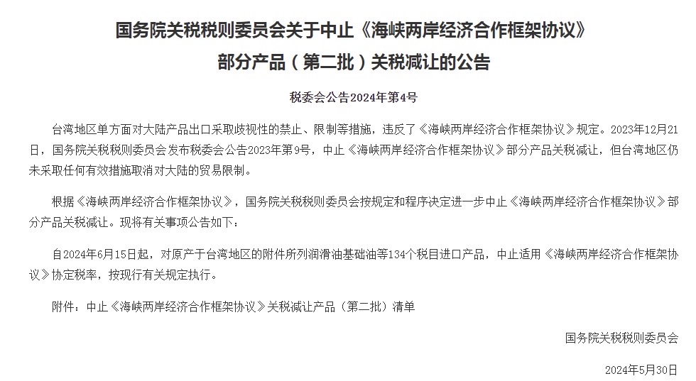 中國財政部於2024年5月30日發布了取消134項台灣商品於ECFA協議裡進口中國的關稅優惠,並自2024年6月15日起開始實施,請台灣出口商及早因應. 若你無法確認貴公司產品是否被列入取消項目名單中,你可透過以下專線與我們聯絡。