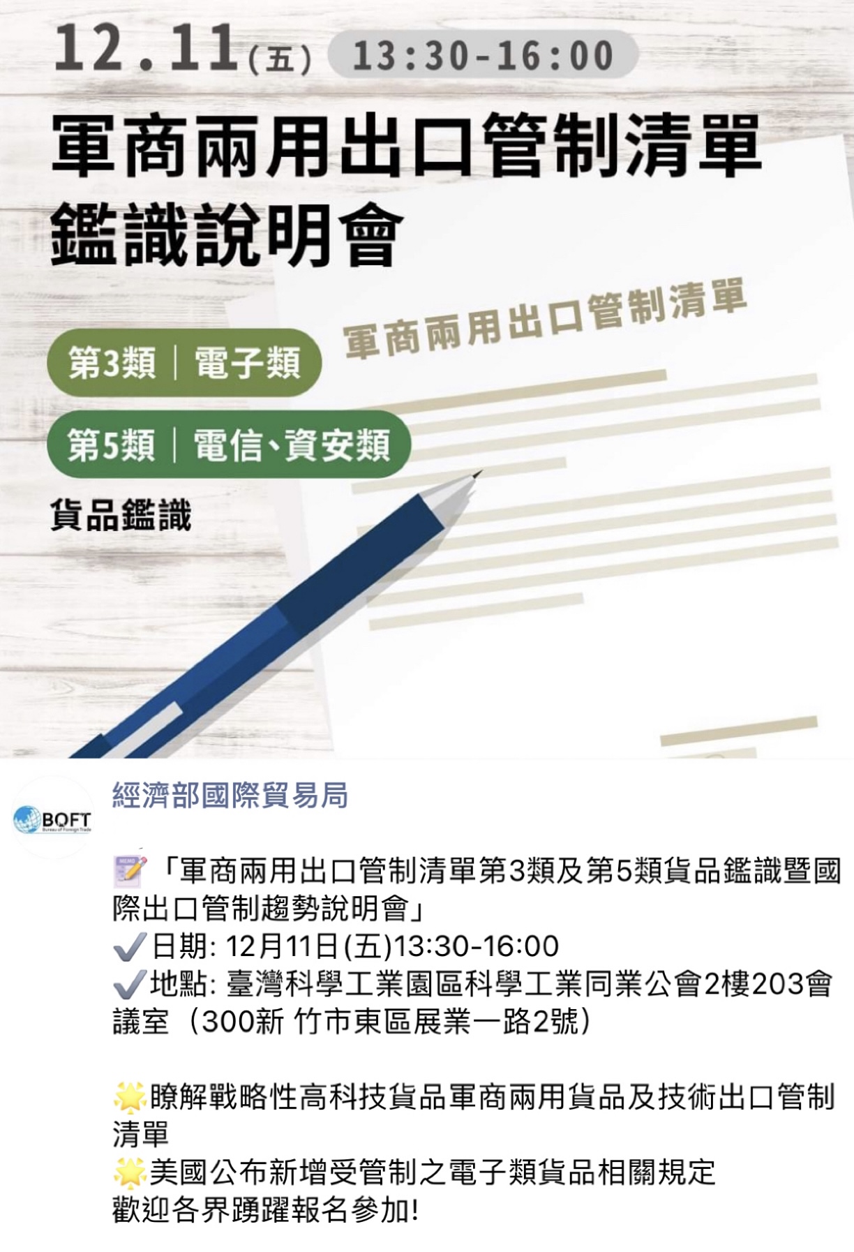 有關出口管制清單說明會